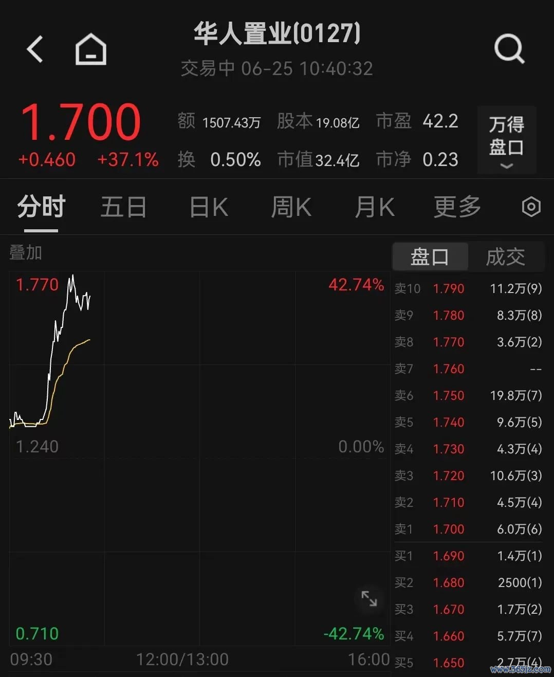 6月25日早盘,华人置业盘中一度拉升涨超40%,为连续第三日上涨,股价创2023年11月以来新高。